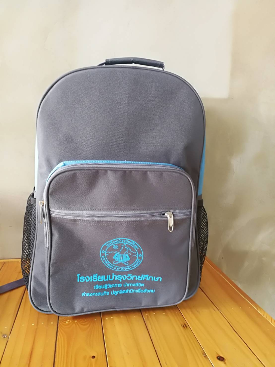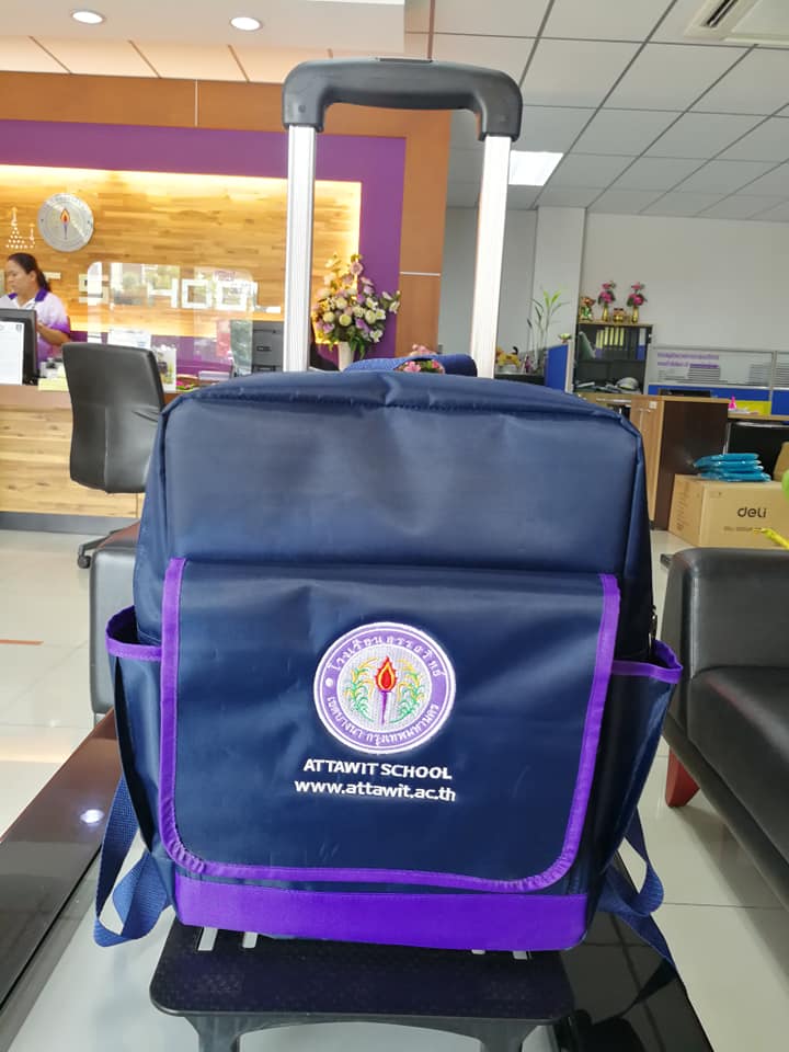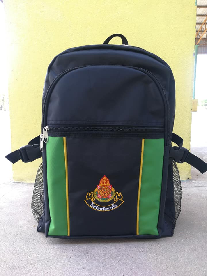ตัวอย่างผลงานกระเป๋านักเรียนของโรงเรียนต่างๆ ทนทาน มีช่องใส่อุปกรณ์และหนังสือแบบจัดเต็ม ผ้าคุณภาพดี หนาและทน สั่งซื้อได้ที่ Panuwat Shop
